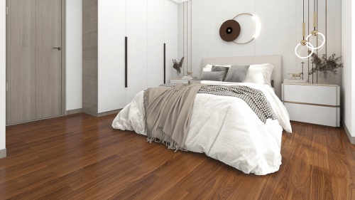 在花色上,保留了原木纹的纹理,红褐色的色调让整板更有复古和高奢大气的感觉,适合父母、祖辈的家居风格。
