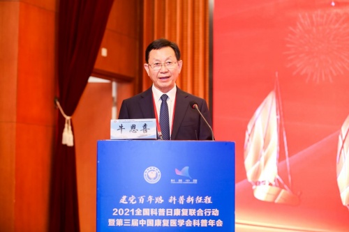 (图)中国康复医学会党委书记牛恩喜宣读《关于2021年度中国康复医学会科普示范基地评审结果的通报》