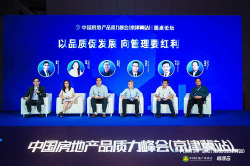 圆桌论坛环节,主持人明源地产研究院品质力分院院长唐亮,与河北省住宅与房地产业协会常务副会长张彦峰、北京科技园建设(集团)股份有限公司技术总监张宝利、华润置地华北大区设计管理部副总经理田菡、金螳螂三维软件公司董事长郭金柱、中冶建筑研究总院有限公司设计院院长郭戍5位嘉宾,围绕“以品质促发展 向管理要红利”主题,从研究机构、第三方、开发商、协会等不同视角分析品质新时代,深度解析如何向管理要红利的可行方案。