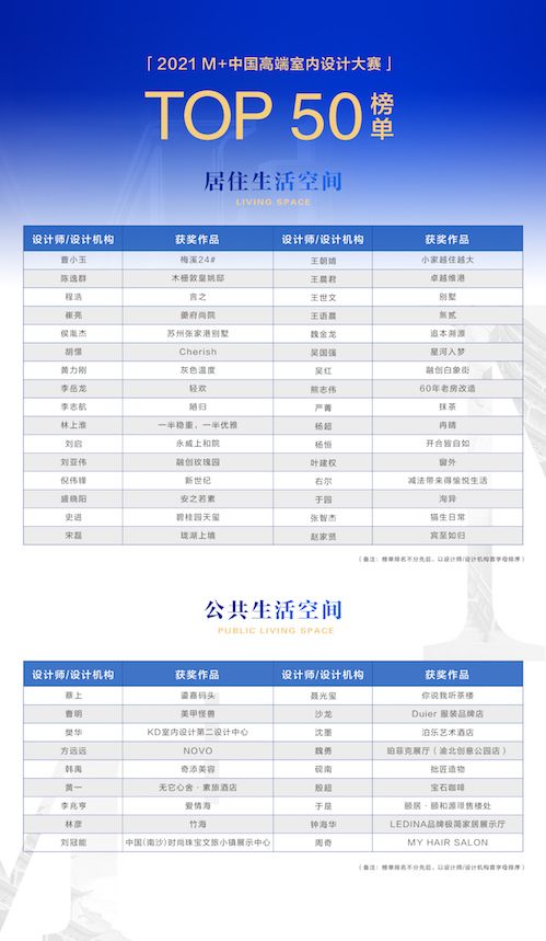 (榜单排名不分先后,以设计师/设计机构首字母排序)