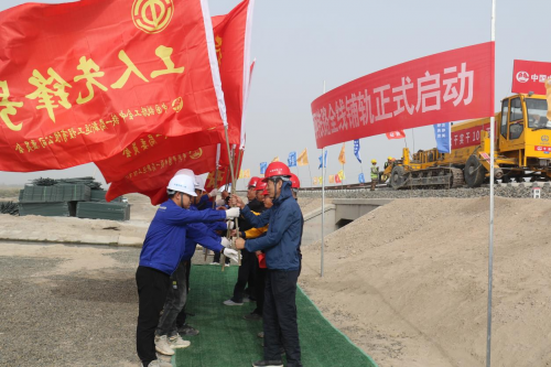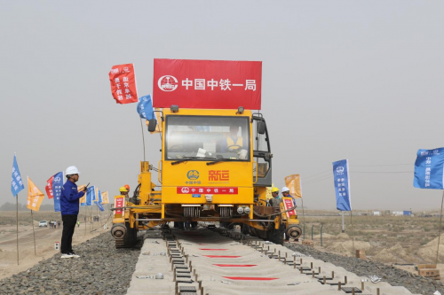 9月26日,在新疆阿克苏阿阿铁路铺轨施工现场,随着两根500米长钢轨在牵引车与20名工人的操作下,平稳地落到混凝土轨枕槽中,标志着阿克苏至阿拉尔铁路(简称阿阿铁路)正式进入铺轨阶段。
