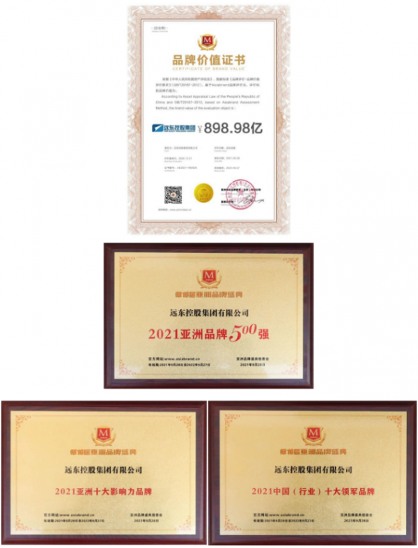 9月28日,第16届亚洲品牌盛典隆重启幕。会上发布了2021年“亚洲品牌500强”排行榜,远东控股集团以898.98亿元的品牌价值,与华为、阿里巴巴、工商银行等知名品牌共同登榜,并蝉联该榜行业品牌价值第一殊荣。同时,远东控股荣获“亚洲十大影响力品牌”与“中国(行业)十大领军品牌”。