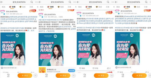 除此之外,本次好太太节在微博设立讨论话题#音为爱为TA唱#,并引起了中国劲酒、欧气小财神等近50家品牌官方号进行转发扩散,得到了大量用户及张韶涵粉丝团的关注和讨论,充分增加话题互动量,扩大活动宣传面,与好太太一起为她力量发声。