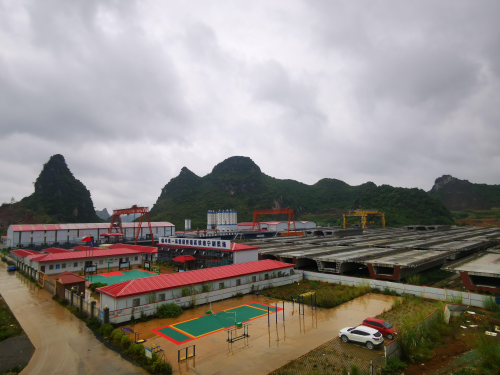 贵南高铁南宁制梁场位于广西南宁市武鸣区甘圩镇,由中铁一局新运公司承建,占地142亩,主要承担贵南高铁11标段446孔箱梁预制、架设及桥面防水保护层的施工。