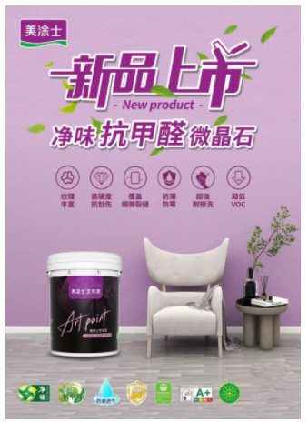 美涂士净味抗甲醛微晶石艺术漆无污染,除甲醛,净化空气,适用于起居室(卧室)这种长期居住的环境,尤其适用于儿童房、 母婴房、老人房等特殊人群居住环境。无论是自然纹理的多变,还是艺术质感的表达,都体现出美涂士环保艺术涂料融于生活的高雅艺术品位,以特有的灵感为你打造不一样的生活空间。