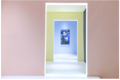 展厅整体沿用了高级灰主色调,展位前厅陈设了小山绿植,营造出娴静的庭院感;凹凸有致的展厅主体,呈现的不仅仅是门窗本身,更多是家中的角落一景;内部是休闲洽谈区,搭配阳光房的展示,形成沉浸式体验。