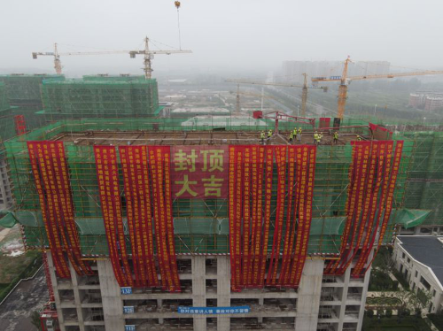 当天边刚刚绽露曙光,单县蘭园工地上早已遍布热火朝天的建设景象。在钢筋混凝土的交响中,建设者穿梭忙碌的身影,伴随着轰隆隆的机器作业声,开启了崭新的一天。在该工程建设中,项目部在确保安全和质量的前提下,以工程履约为根本,集中各种优势资源,全力推进工程建设。特别是在突如其来疫情影响的情况下,项目部拧紧疫情“防控阀”,按下复工复产“快捷键”,调整网络计划,优化施工组织方案,保证工程的安全有序推进。礼炮轰鸣,礼花璀璨,2020年8月5日,蘭园二期工程首栋楼——31#楼喜封金顶。31#楼为高层住宅楼,地下一层、地上18层,总建筑面积8923平方米,建筑总高度为52.5米,建筑结构为框架剪力墙结构。该楼于去年2019年10月正式动工开挖基础,经过全体参加人员的团结协作不懈奋战,比业主要求工期提前了4天。随着首栋楼的封顶大吉,该工程其它各在建楼均加快进度,开启主体结构封顶建设“快进键”。目前,单县蘭园二期项目已全部封顶,正向着竣工目标奋力冲刺。
