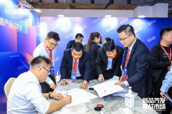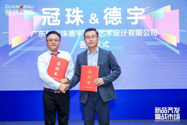 随后,潘总代表佛山瓷砖品牌冠珠瓷砖与广东新明珠德宇陶瓷艺术设计有限公司达成战略合作,并在现场成功举行了签约仪式,本次合作将进一步提升冠珠产品竞争力,融合岩板艺术设计新发展。