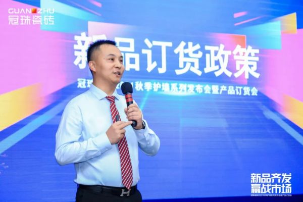 在新品发布环节,集团产品规划部周惠女士结合2021米兰设计周和意大利展产品流行趋势,详细解读了本次发布的上百款硬核新品,冠珠瓷砖品牌副总经理唐楚雄先生则就新品订货政策进行了逐一介绍。质感与性能兼具的高颜新品,巨大的优惠订货政策,引发现场热烈反响呼声不断。
