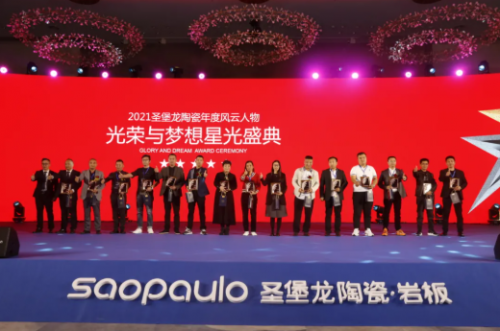 在品牌的不断进阶中,圣堡龙取得硕果累累,而圣堡龙获得的每一个成就,都离不开一路支持圣堡龙的经销商家人们,因为他们的努力和拼搏,才成就了今天的圣堡龙陶瓷。在会议中,还进行了盛大的“2021圣堡龙陶瓷年度风云人物——光荣与梦想星光盛典”。