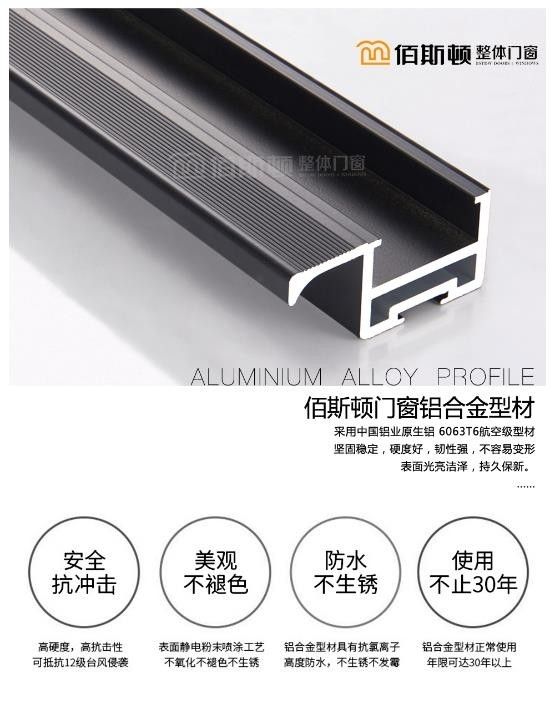 佰斯顿整体门窗率先执行GB/T 8478-2020标准,并采用了优质的T6063原生硅钛镁合金铝材,拥有密度小、强度高等特点,在外力的作用下也不会轻易变形。厚实的边框保证了隔音效果,另一方面又提高了门窗的稳定性,增强门窗的使用寿命。