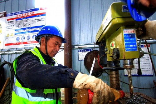 “以前给钢板钻眼都是拿手扳钻,一个小小的钢板孔就要十几到二十分钟才能钻透,现在不到一分钟就能搞定的,方便地很哩…”