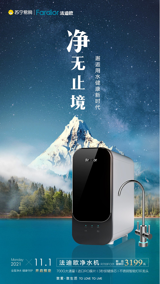 十余年里,法迪欧在厨电领域始终立足品质,努力创新,在持续走高的净水市场中,以用户需求为主导,重磅推出两款净水新品,进一步完善产品布局,助力打造全屋净水。大通量、高过滤精度的厨下和前置净水器,强强联合为用户带来全方位的健康用水守护。11月1日,法迪欧新品厨下净水机R700FC01、前置净水机Q4500FC01开启预售活动,准备为健康用水加码的用户,可前往苏宁易购全国门店预定下单。