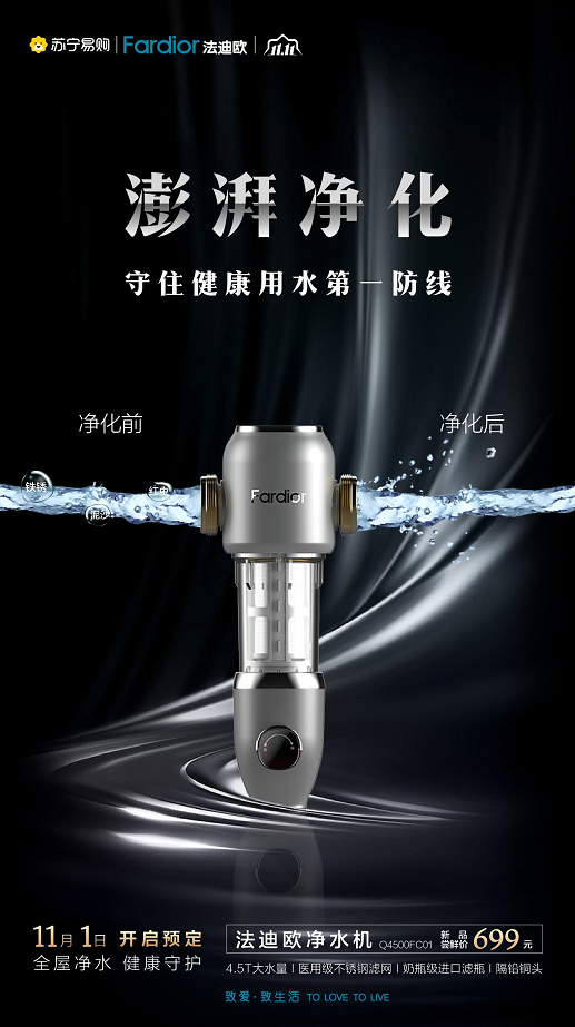 后疫情时代,消费需求随着人们健康意识、悦己意识的提高,正趋向于健康化、智能化、个性化发展。尤其是饮水问题,正经历从“喝足水”到“喝好水”由量变转为质变的过程。保护家人健康自然要将饮水健康放在首位,越来越多的家庭将净水机列入健康生活必备家电清单中。但如何选择大通量、净化效果好,且适合自己地域的净水产品呢?秉承“致爱致生活”品牌理念的法迪欧携新品厨下净水机R700FC01、前置净水机Q4500FC01进军全屋净水领域,从源头守护全家用水健康。11月1日,两款净水机均开启预售,大通量、澎湃净化致敬健康生活。