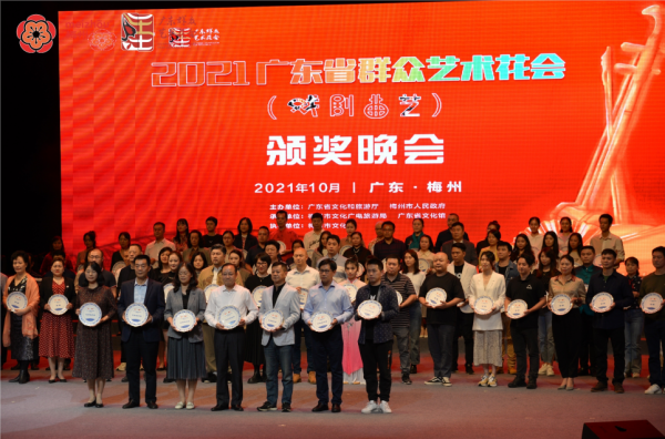 艺术花开,满城芬芳。10月29日,2021广东省群众艺术花会(戏剧曲艺)闭幕式暨颁奖晚会在梅州举行!来自广东省内21个地市和有关省市代表队的共76支戏剧曲艺优秀作品在梅州切磋技艺、一较高下。经过为期5天7场的激烈比拼,广州市大放异彩,6个参赛作品:戏剧类包括小品《火》、小品《锁》、小粤剧《村道弯弯》,曲艺类包括广东小调表演唱《荔湾缘中国梦》、粤曲子喉独唱《天使的心愿》、数来宝《助你网红》,斩获4金1银1铜,广州市文化广电旅游局获得优秀组织奖,满载而归!