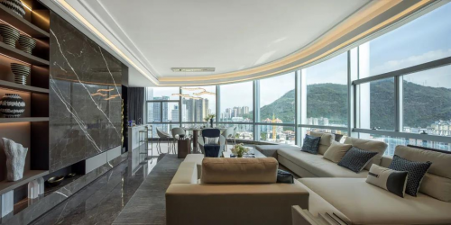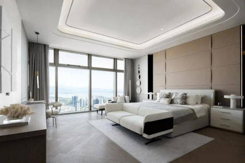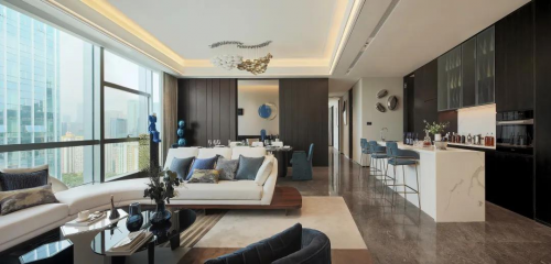 样板间由梁志天、梁景华操刀硬装设计,软装部分由葛亚曦打造,居住者可将深圳美景尽收眼底。