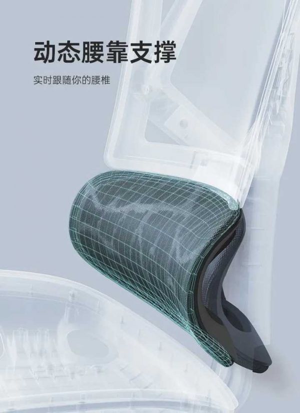 根据人体生理曲度科学分区,精准支撑,保护腰背,有效保持正确坐姿的同时,很好的考虑了用户体验舒适性,真正做到既矫正坐姿又不硌腰,舒适又健康。打破了传统座椅腰部无法有效支撑的用户痛点,根据腰部活动提供恰到好处的动态腰部支撑,有效缓解腰部压力。