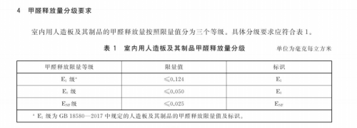 GB 39600-2021《人造板及其制品甲醛释放量分级》作为引领我国乃至全球人造板工业环保的最高标准,将甲醛释放量标准从原来仅有的一个E1级别,细分为E1、E0、ENF三个级别。