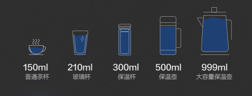 还可以根据个人需求选择150ml/210ml/300ml/500ml/999ml的常用水量,精准调控,水满即停,选择所需水量后,就算离开净饮机为其他事情忙碌,也不担心水会溢出来。