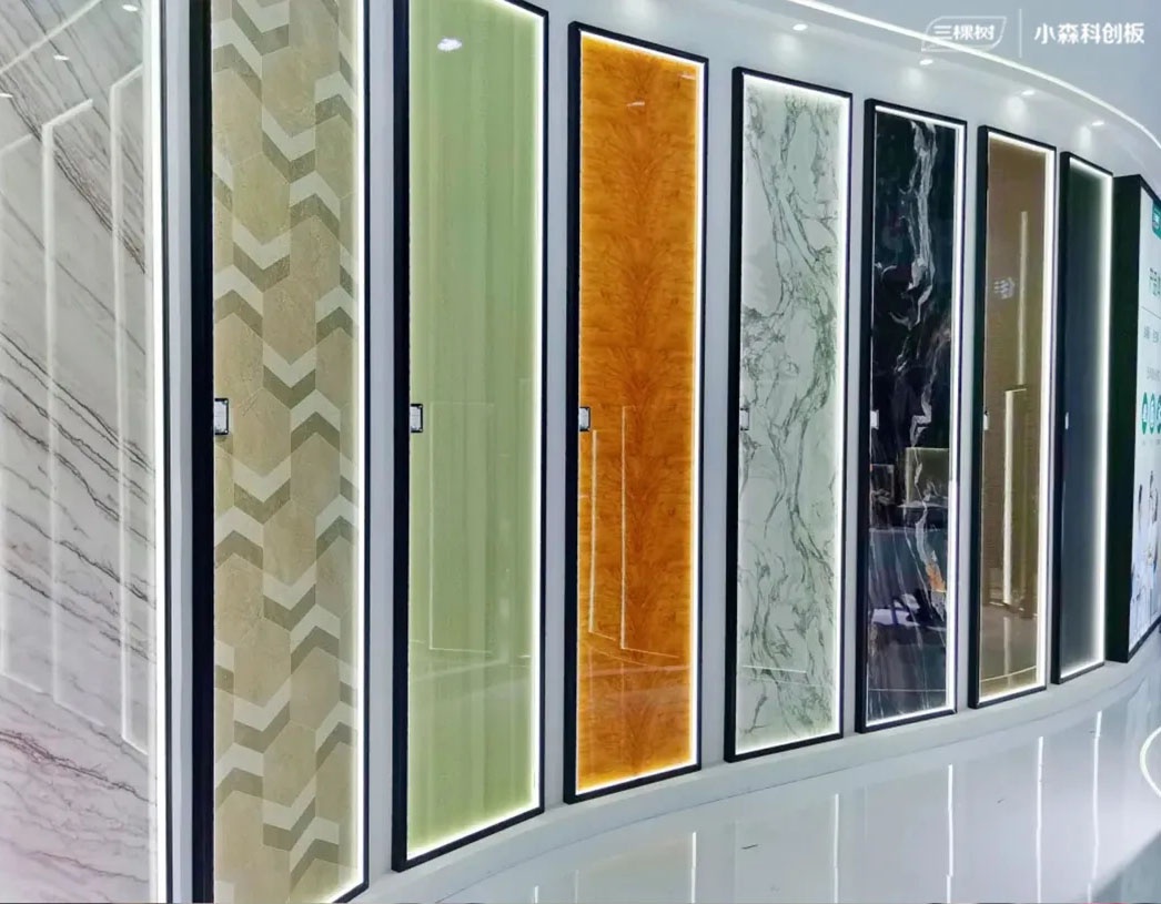 ▪ 三棵树小森科创板采用高频智能打印技术一体化成型,减少原有生产工艺中的热能排放,TVOC以及甲醛等挥发气体对环境的污染。并且通过高频智能打印技术,在真实木皮表面,精准呈现木材、石材的色彩、纹理、光泽与触感,不损害贵重材种,促进生态环境绿色循环。