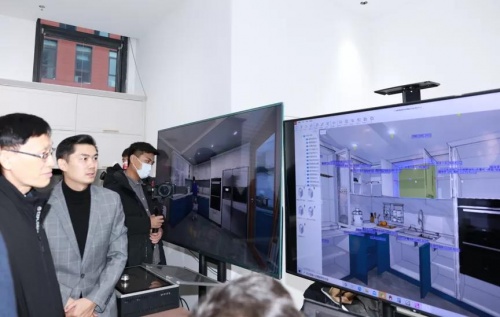 ▲东易日盛为原工信部消费品工业司司长高延敏讲解演示全景数字化系统
