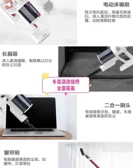斐纳TOMEFON无线吸尘器可谓是百变能手,通过主机与不同刷头的连接可应对不同卫生场景的清洁。灵活地刷可用于地面的日常清洁;电动床褥刷可深入清洁纤维内部的皮屑、花粉都颗粒物;长扁吸可深入家具缝隙,吸除难以扫出的灰尘垃圾;二合一刷头可有效吸除毛发、键盘、车厢、桌面等表面的灰尘;窗帘刷可吸除脆弱表面的尘垢,如窗帘、灯具等。