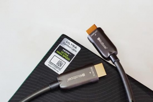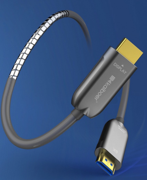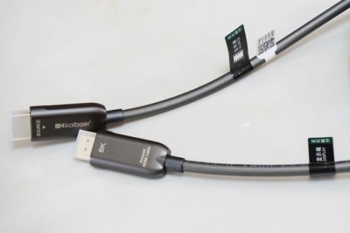 开博尔五代万兆光纤HDMI2.1高清线插口为铜壳镀金材质制成,具有防磨耐用等特点,镀金接口对信号的传输稳定也起到一定的好处。由于产品采用的光纤技术,而光纤又具有收发顺序,所以在使用过程中,比铜线要麻烦点,不过产品接头上已经做好标注Source、Display接口,让用户一目了然。