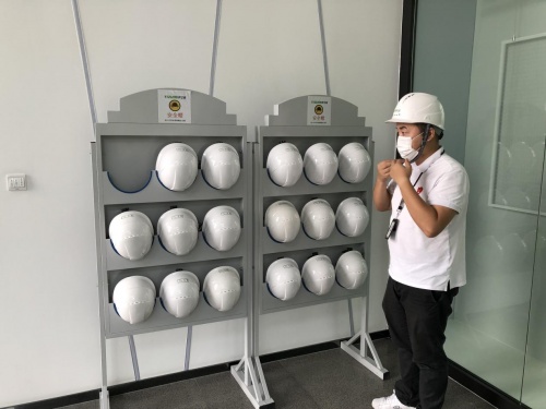 在伊之密精密机械(苏州)有限公司,企业自2018年投产以来,至今没有发生安全事故。工作人员佩戴安全帽进入企业车间后,“安全第一”的显眼投影随即落在脚下。在该公司近8000平方米的生产车间,超70套灭火装备配备其中,每套装备正上方悬挂着1块灭火器指示牌,以便员工随时启用抢险。