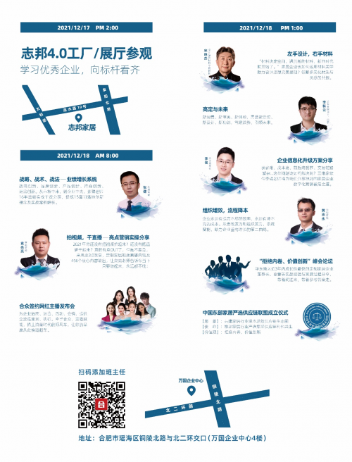 向名企看齐,向强者学习。应东部定制圈100多家中、小企业的强烈呼吁,活动将提前半天开始,12月17日下午,组委会届时将组织与会企业代表参观行业标杆——志邦家居4.0智能工厂与总部形象展厅。
