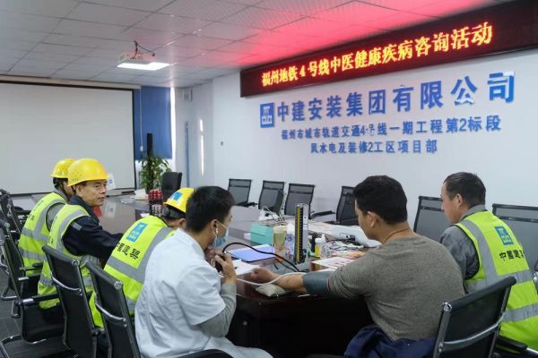 为推进党史学习教育走深走实,践行“我为群众办实事”实践要求,近日,中建安装集团有限公司南方分公司福州市城市轨道交通4号线项目开展了为期一周的“中医健康疾病咨询”健康义诊服务活动。为了真正做到为基层工友办实事、办好事,健康义诊活动针对工友的特点,项目部邀请了中医林子龙医生 ,为基层工友提供疾病诊疗和健康指导。
