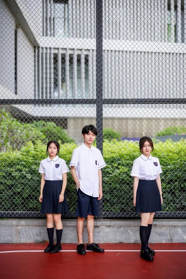 藏青色的制式校服,简约而不简单的设计配搭,将青春的气息与校园的古朴典雅巧妙融合。