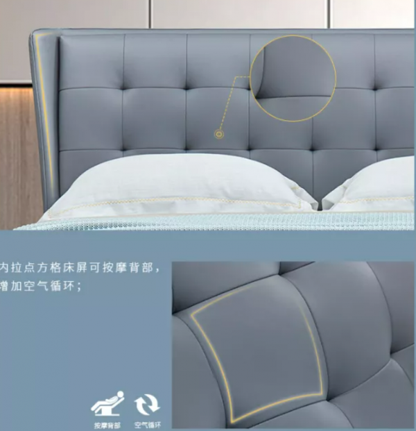 床的主体材质精选于圈养3-4年进口黄牛皮,材质光泽自然,低调优雅,不仅触感细腻、透气还耐磨;再搭配上精致的工艺,保留了牛皮的质感,舒适且不失高级。
