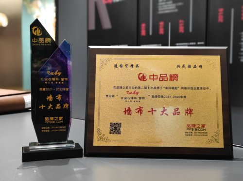 评选结果于12月07日重磅发布,其中红宝石墙布窗帘凭借极高的品牌美誉度和强大的品牌影响力脱颖而出,荣获2021年墙布行业“十大品牌”称号,充分彰显卓越实力。