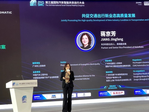 在本届国际汽车智能共享出行大会上,禾多科技合伙人、高级副总裁蒋京芳受邀出席大会并进行题为“自动驾驶全场景量产落地”的主题演讲。
