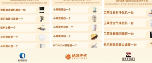 为回馈广大消费者,每平每屋和商家联手为消费者提供油烟机套装、美的前置过滤器、卫莱士食材净化机、卫莱士空气净化器、卫莱士智能消毒柜、小米电饭煲等多种丰厚的家电大礼。