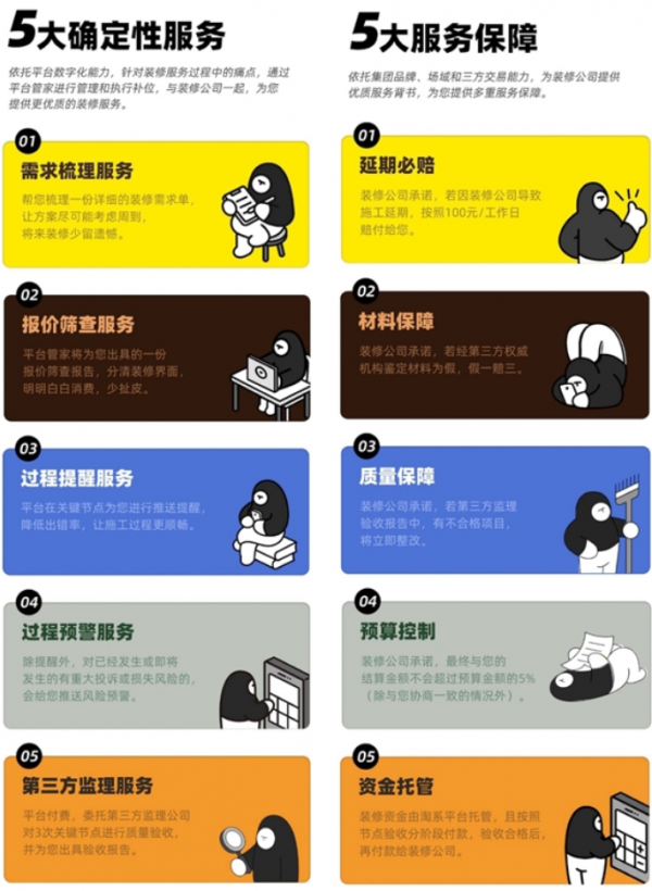 每平每屋与深度合作商户 免费提供5大服务和5大保障