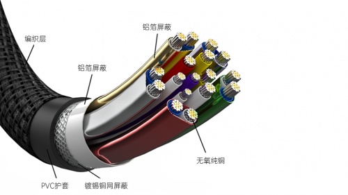 另外,祈翱在HDMI线身外部材质方面颇下功夫,采用高规格工程用五大屏蔽层方案——线芯绝缘层、铝箔层、镀锡铜网、PVC护套及编织层,阻断日常可能发生的几乎所有信号干扰,大幅提高线材使用寿命,让玩家省心放心,舒适享用无损影画。