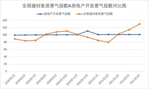 据国家统计局、商务部流通业发展司公布的数据显示,2021年11月,房地产开发景气指数为100.51,基本保持稳定;全国建材家居景气指数达139.50,“倒剪刀”差雏形已现。