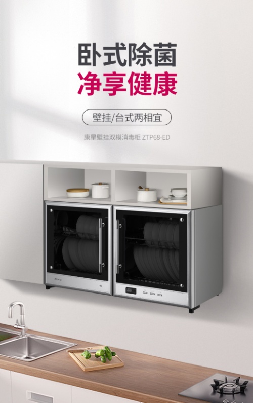 新的一年连消毒柜都不躺平了,你还选择躺平吗?康星ZTP68-ED壁挂双模消毒柜,让消毒柜不仅能躺平,还能挂起来。幼儿园壁挂式、家居厨房壁挂式、家居厨房台式3种消毒柜安置方式,让你随心选择更省空间。二星消毒,125℃高温消毒,让顽固性病菌及细菌无处可藏。