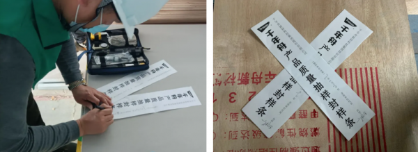 公检团队在现场进行了取样检测,主要围绕板材厚度、长、宽尺寸、对角线尺寸以及含水率等开展检测,随后封存样块送至检测机构进行全检。