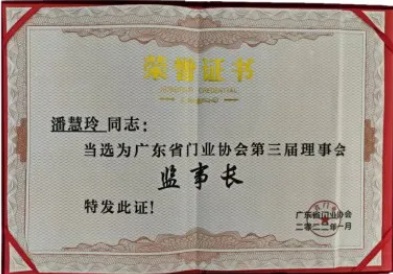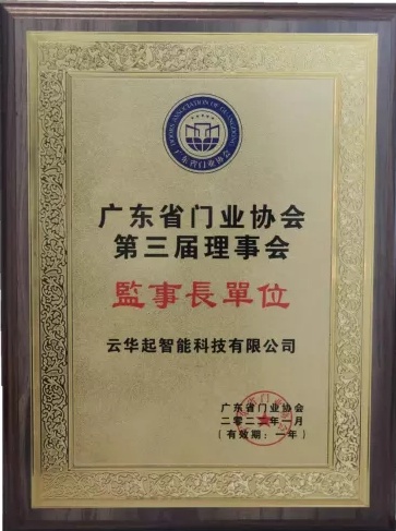 以及广东省门业协会特授予云华起磁悬浮广东省门业协会第三届监事长单位