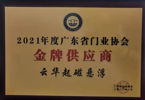 2021年以来,云华起磁悬浮不断开拓创新,保持高标准高要求的产品质量的同时以高质量的服务反馈客户,在行业内好评如潮。广东省门业协会特授予云华起磁悬浮金牌供应商牌匾。