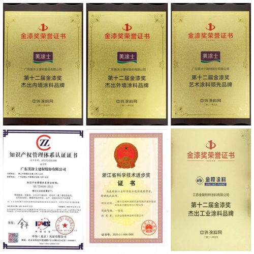 在2021这一年里,美涂士更加坚定了自己的初心,踏稳脚步,砥砺前行。同样,美涂士在2021年满载赞誉,获得诸多成就。2021年美涂士在中国品牌力指数SM中,墙面漆品牌排行榜第10位;木器漆(油漆)品牌排行榜第10位;2021亚太涂料排行榜第15位。并荣获“广东省涂料行业协第九届理事会 副会长单位”,中国涂料行业“十三五”高质量发展企业,“第十二届金漆奖艺术涂料领先品牌”,“第十二届金漆奖外墙涂料领先品牌”,“第十二届金漆奖内墙面漆领先品牌”和“知识产权管理体系认证”等等(排名不分先后)。