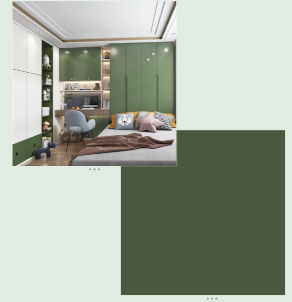 「云栖竹韵」,集活泼与高级于一体的家装色彩,在家装中起到了画龙点睛的作用,增加了视觉上的美感。