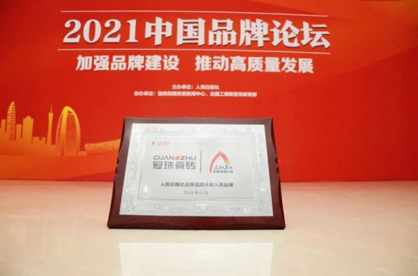 由人民日报社主办的“2021中国品牌论坛”,冠珠瓷砖入选人民日报社“品牌强国计划”的唯一瓷砖品牌