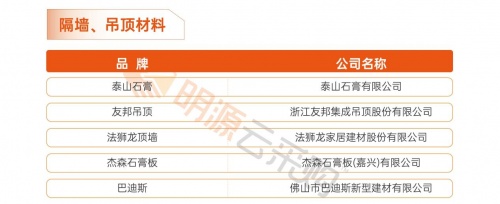 ▼2021年度中国房地产供应商竞争力10强隔墙、吊顶材料榜单▼