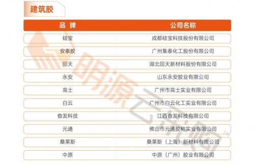▼2021年度中国房地产供应商竞争力10强建筑胶榜单▼