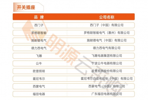 ▼2021年度中国房地产供应商竞争力10强开关插座榜单▼