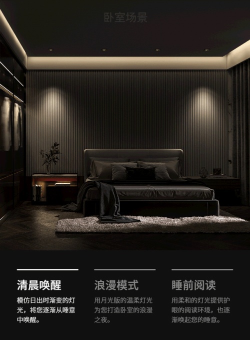 无主灯照明就是抛弃了又大又亮、天天罩在头顶的主灯,用更多更具体的光源照亮我们希望照亮的空间,照明方式更加精准、具体,更加贴合实际使用需求。智能无主灯,在原有的无主灯基础上,接入了小米智能芯片,提供了更多场景式的设定,并完美适配小爱音箱等产品,实现了语音控制灯光效果,科技感满满。