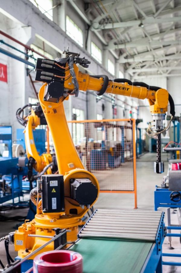 在金杯电工衡阳电缆有限公司厂房内,工人轻触屏幕,“唤醒”机械臂,自动进行绞线、绝缘、交联等工序,一根合格的线缆就制作完成。